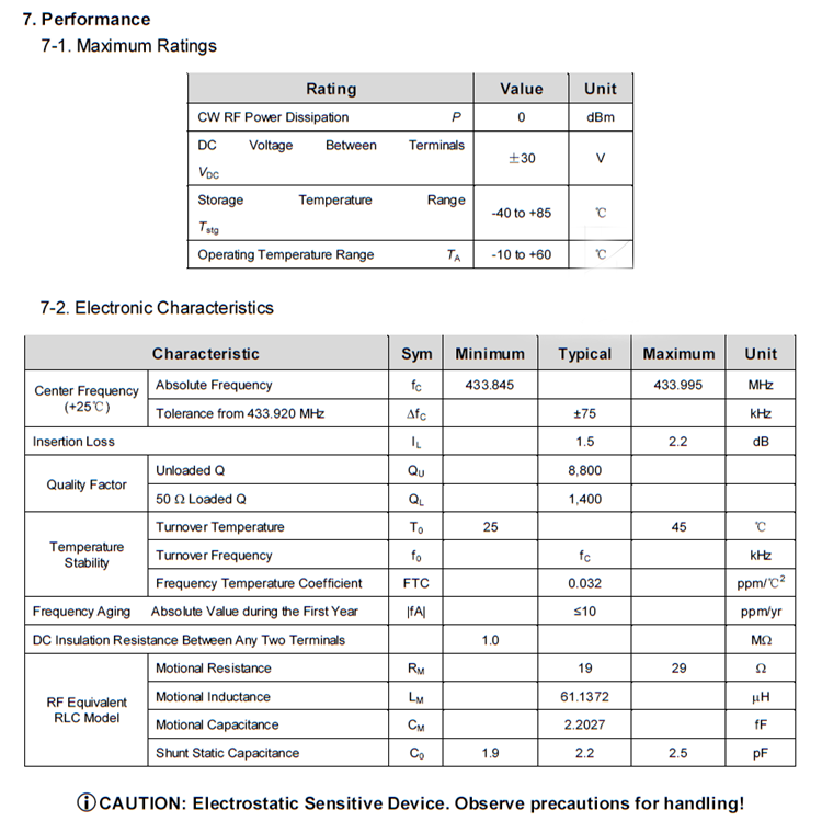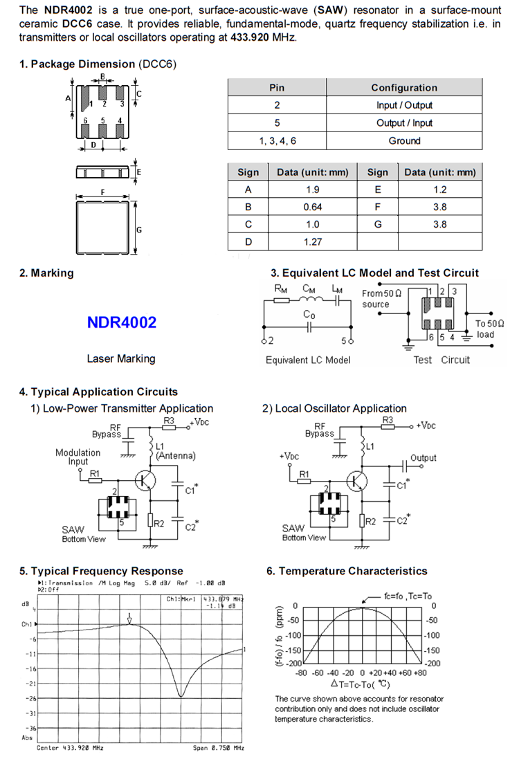 - SAW声表谐振器 3838 R433M R433.92M 7